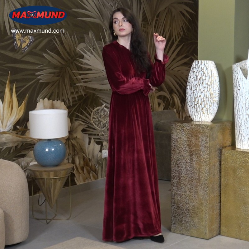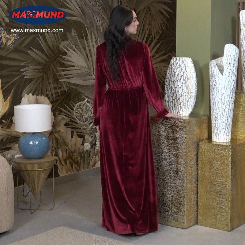 Feminidad y elegancia se dan la mano en esta versión burdeos del vestido Almudena. Un tono cálido y envolvente que resalta la luz del rostro y acompaña perfectamente la atmósfera de las fiestas. Con el característico fruncido en cintura, cuello y puños, te sentirás cómoda, femenina y sofisticada.