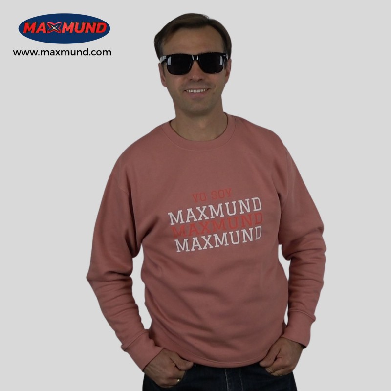 Haz una declaración de identidad con esta sudadera exclusiva en tono salmón-marrón: suave, potente y original. El mensaje "YO SOY MAXMUND" resuena con fuerza en el pecho, repetido como un himno de estilo y actitud. Si te gusta marcar la diferencia, ésta es para ti.
